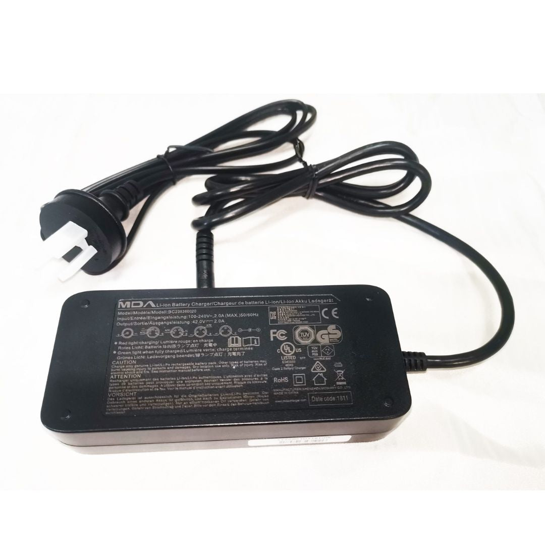- Charger: Included 48V 2A – Mini Pin Plug